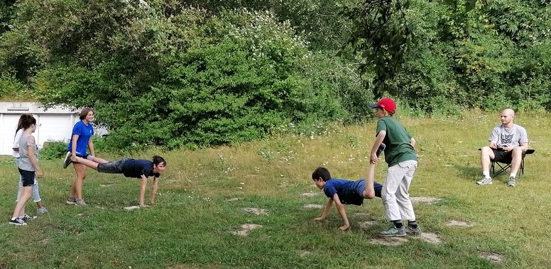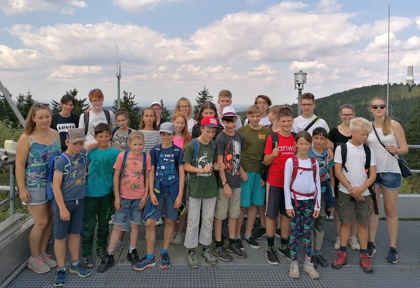 Am Dienstag ging es im Nawi-Programm um die Geophysik. Im Fokus lag die Entstehung von Erdbeben und deren Auswirkungen auf die Umwelt, Videos und Fotos sollten Eindrücke von gewaltigen Vulkanausbrüchen, Hangrutschen und Sturzfluten verdeutlichen. Knifflige Rechenaufgaben ließen die Köpfe rauchen und verdeutlichten gleichzeitig das Mathe- und Physik-Niveau, das Geologen benötigen. Nachmittags bekamen wir eine Führung in der Messstation auf dem kleinen Feldberg. Im Anschluss daran standen die Wettkampfspiele auf dem Programm. Die Kinder bildeten vier Teams, in denen sie gemeinsam mit aller Kraft um den Sieg an verschiedenen Stationen kämpften. Eine gute Kommunikation und Zusammenarbeit im Team war gefragt, wenn man als Sieger hervortreten wollte. Rhythmusgefühl, Geschicklichkeit und Kraft brauchten sie, um an Stationen wie „Cornhole“, „Inselhüpfen“, „Water-ball“ oder „Schubkarren-Rennen“ zu bestehen. Beim „Inselhüpfen“ mussten die Teilnehmer in begrenzter Zeit hüpfend von „Insel“ zu „Insel“ springen und dabei einen Becher voll mit Wasser auf die andere Seite des Feldes transportieren, um als Team so viel Wasser wie möglich zu retten. Bei „Water-ball“ spielten jeweils zwei Teams gegeneinander. Es musste mit einem Stock eine Wasserflasche in der Mitte des Feldes umgeworfen werden. Hatte ein Team dies geschafft, musste es so schnell wie möglich einen Becher Wasser trinken, bevor das andere Team die Flasche wieder aufgestellt und den Stock zurückgebracht hat. Wer zuerst leere Becher vorweisen konnte, marschierte als Sieger zur nächsten Station. Beim „Cornhole“ (das neben den Programmpunkten in jeder freien Minute gespielt wurde) musste das Team innerhalb begrenzter Zeit so viele Maissäckchen in ein Loch eines erhöhten Holzbrettes werfen, wie möglich. Beim „Schubkarren-Rennen“ mussten sie als Zweierpärchen einen Parcours ablaufen. Einer als Schubkarre, der andere als Schubkarren-Träger.