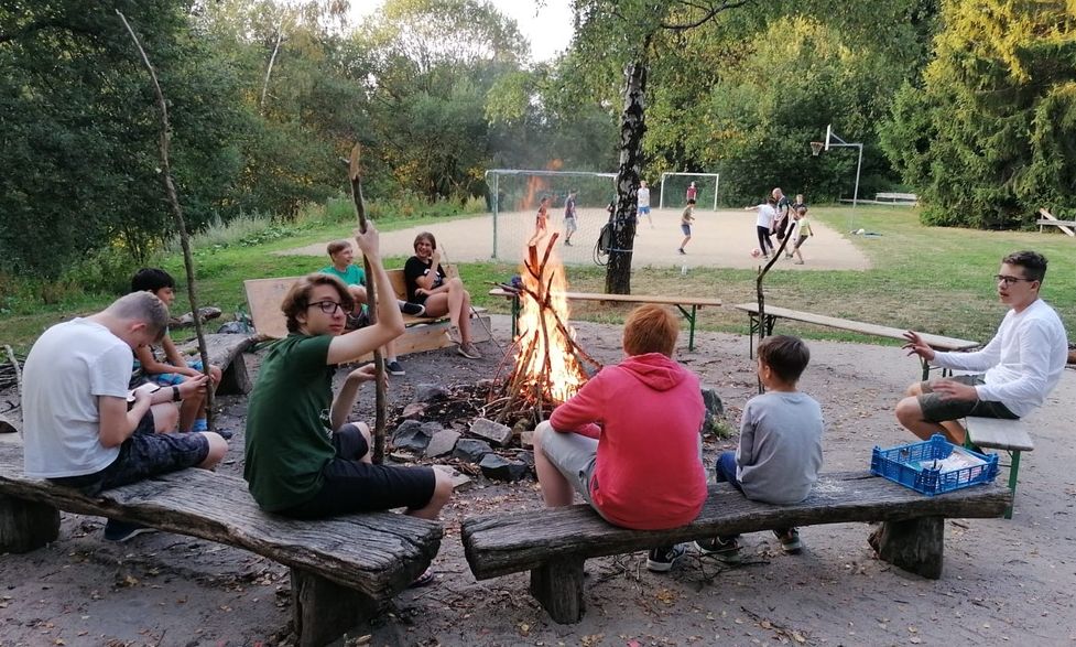 Nachdem der Mittwoch etwas regnerisch begonnen hatte, erfreute uns am Donnerstag der sonnige Tag, der unser Geländespiel noch schöner machte. Bevor wir mit dem Geländespiel starteten, ging es im Nawi-Programm um die Themen „Mineralogie und Umwelt“. Ein kleiner Einblick in die Welt der Kristalle und deren chemischen Aufbau lieferte viel Gesprächsstoff. Nachmittags wurden die Themen Wasser, Boden und Schadstoffe aufgegriffen. Dabei testeten die Kinder unter anderem selbst die Wasseraufnahmefähigkeit von Böden und erarbeiteten den Wasserkreislauf selbstständig. Im Geländespiel wurde dieses Jahr um gefundene Goldbarren duelliert. Zwei Goldgräber-Gruppen und zwei Banditen-Gruppen suchten auf dem gesamten Jugendherbergsgelände nach versteckten Goldbarren. Dabei war die Aufgabe der Goldgräber diese zu finden und zur „Bank“ zu bringen und die der Banditen, Goldgräber mit Goldbarren in den Händen zu fangen. Gelang es einem Goldgräber, ohne von einem Banditen gefangen zu werden, den Goldbarren in die Bank zu bringen, war der Barren sicher auf der Bank gelagert. Wurde er allerdings vor der „Safe-Zone“ gefangen, duellierten Goldgräber und Bandit sich bei einer Runde „Cornhole“ um das Stück Gold. Gewonnen hatte am Ende das Team mit den meisten Barren. Das Abendessen wurde an diesem Tag durch gemeinsames Grillen auf unserer Terrasse abgelöst. Und nach den letzten AGs für die Woche, endete der Tag dieses Jahr (nachdem es letztes Jahr aufgrund von Waldbrandgefahr ausfallen musste) mit einem ersehnten Highlight – dem Lagerfeuer.