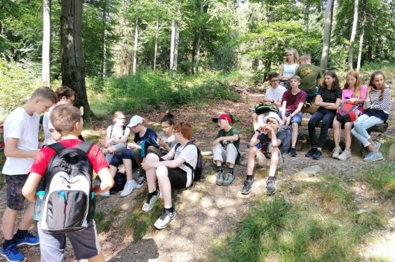 Nach dem ersten aufregenden Tag ging es dann richtig los mit dem naturwissenschaftlichen Programm. Es wurden Gesteine und Minerale betrachtet, Definitionen und Klassifikationen dieser besprochen und deren Herkunft diskutiert. Damit einhergehend wurde der Erdaufbau, die Plattentektonik und Vulkanismus bearbeitet. Auch das Experimentieren kam mit Experimenten wie die „Explosion“ eines Vulkans und die „Verschiebungen der Erdkruste“ nicht zu kurz. Nachmittags ging es auf eine längere Wanderung, bei der die Kinder gelernt haben, wie Geologen im Feld arbeiten. Hierbei wurde der Taunusquarzit am Glaskopf betrachtet, gezeichnet und alle die es gerne versuchen wollten, durften mit Schutzbrille und nach Anweisungen der Betreuerinnen mit dem Geologenhammer Quarzit abschlagen. Abends boten die Betreuer verschiedene AGs an. Hier gab es (wie jedes Jahr) eine bunte Mischung aus sportlichen Aktivitäten wie Tischtennis, Basketball und Tanzen, kreativen Angeboten wie das Basteln von Lesezeichen oder Knüpfen von Freundschaftsbändern bis hin zu Sprachkursen oder einer kleinen Einführung in das Programmieren.