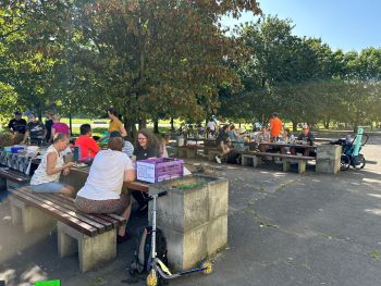 Nach dem Ankommen begrüßte Simone Schlosske die Teilnehmenden und eröffnete eine kurze Vorstellungsrunde. Mit von der Partie waren sowohl Familien direkt aus Frankfurt als auch aus umliegenden oder etwas entfernteren Ecken. Bei einem leckeren Buffet, zu dem alle etwas beigetragen hatten, gab es erste Gelegenheit zum Kennenlernen.